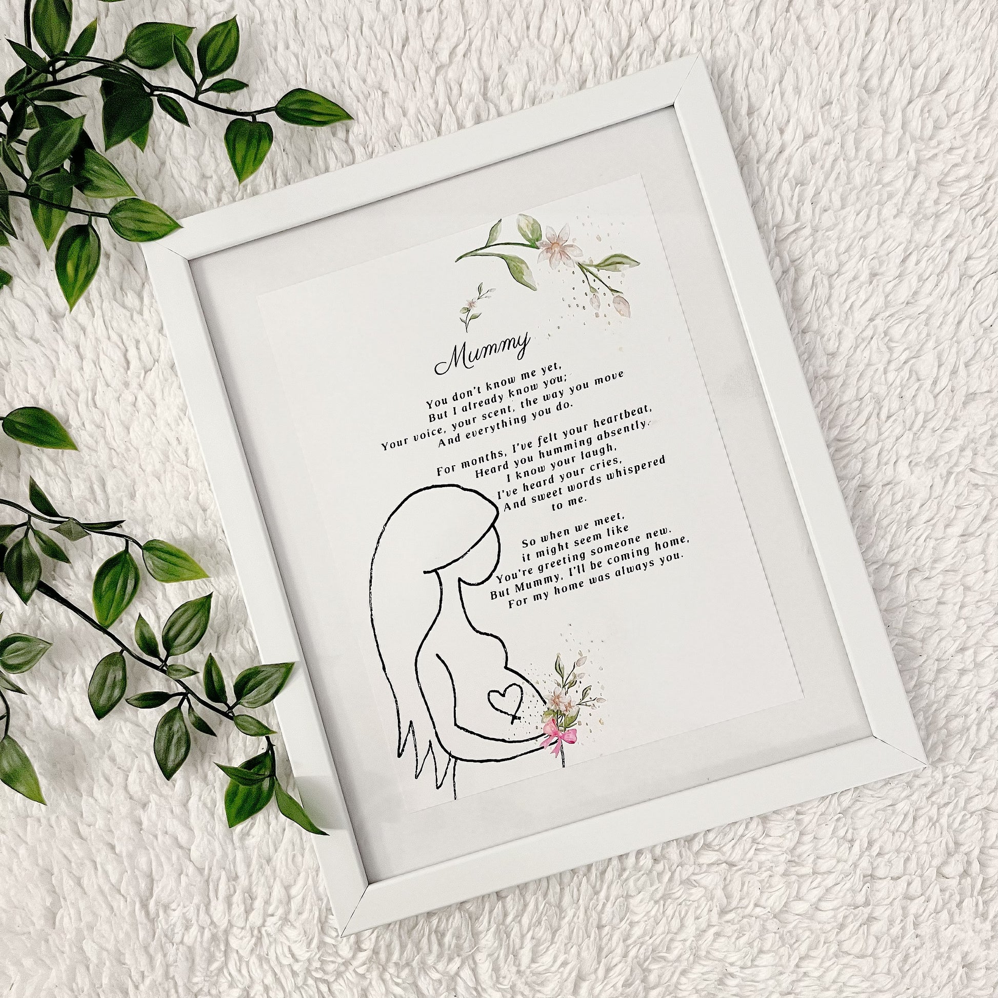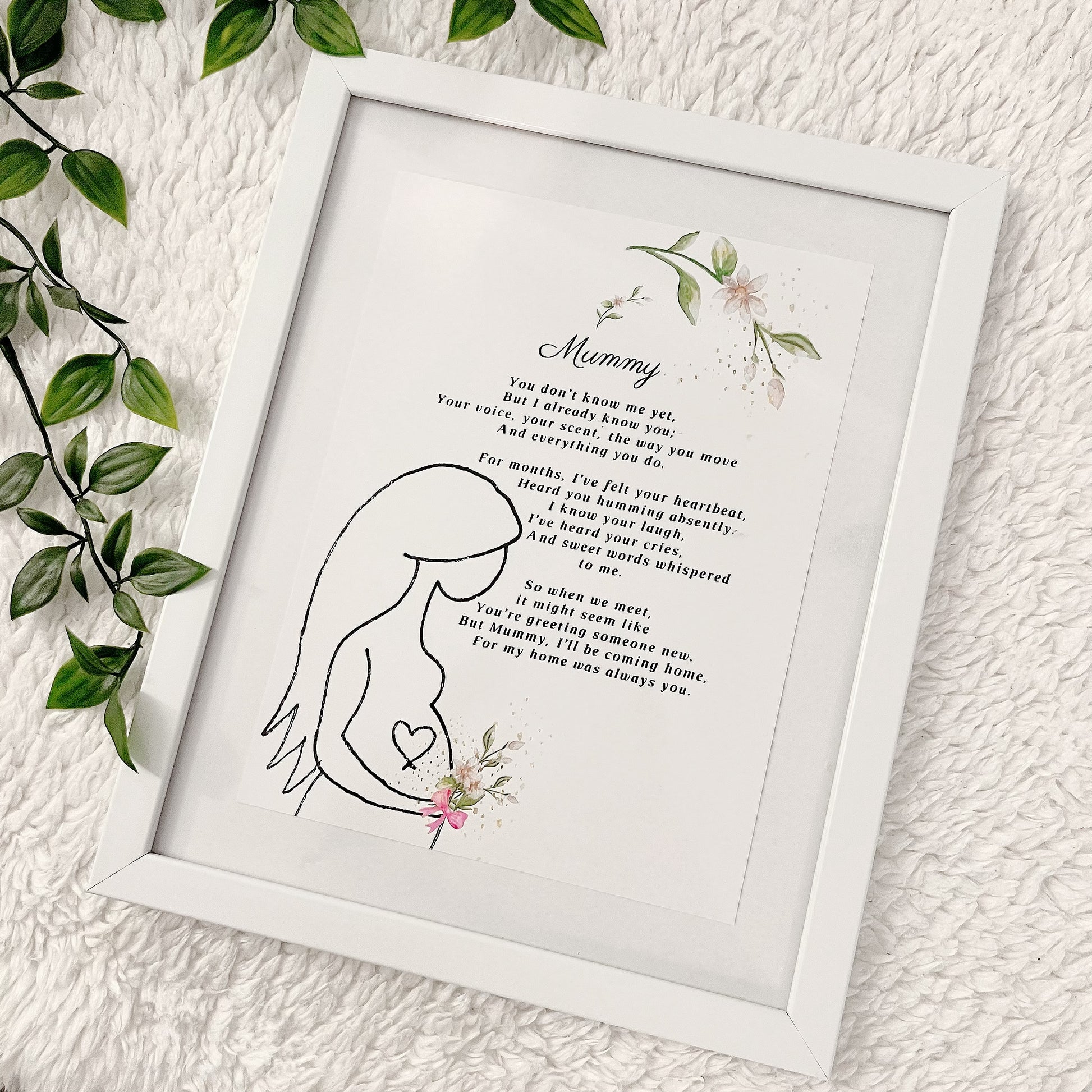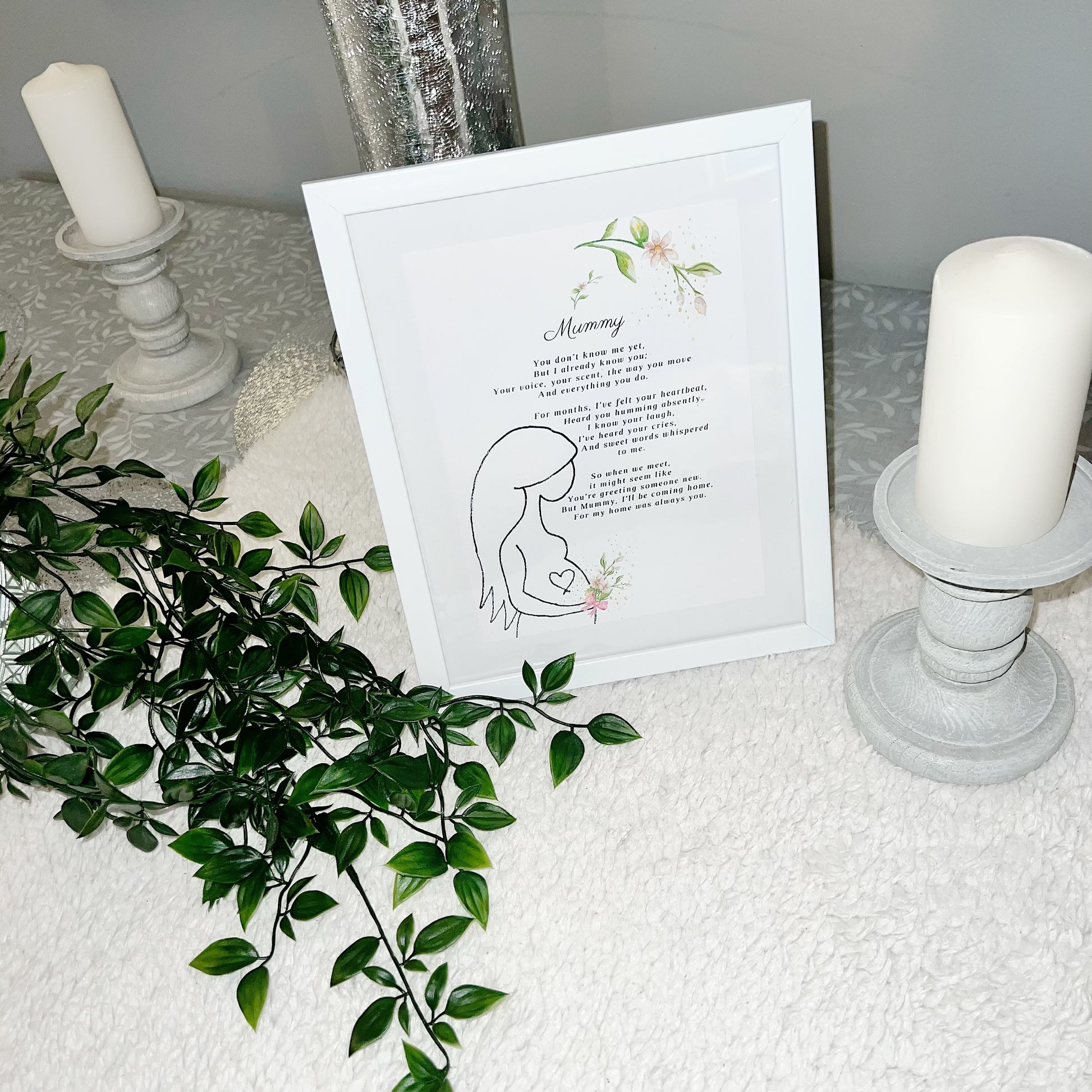 A gorgeous white frame containing a beautiful ‘Mummy To Be’ poem. A touching keepsake to treasure forever!