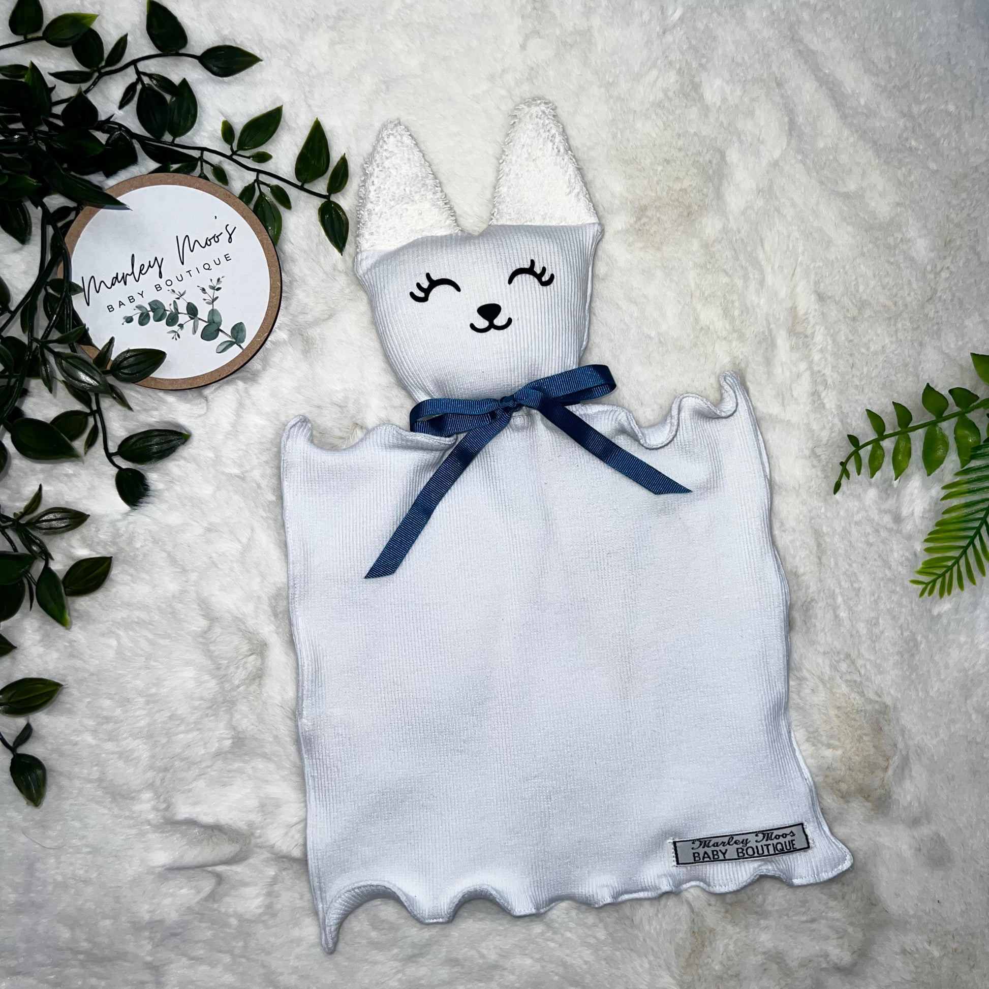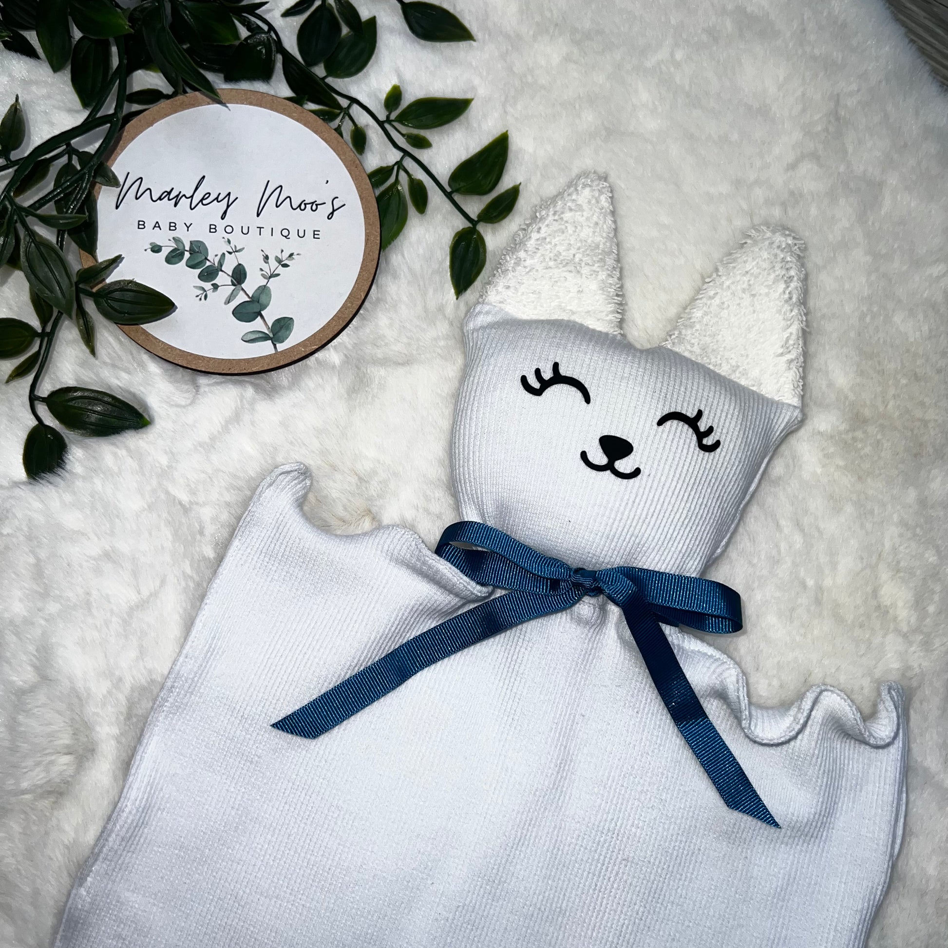 A really cute rabbit design made from white jersey fabric and bamboo towelling ears.