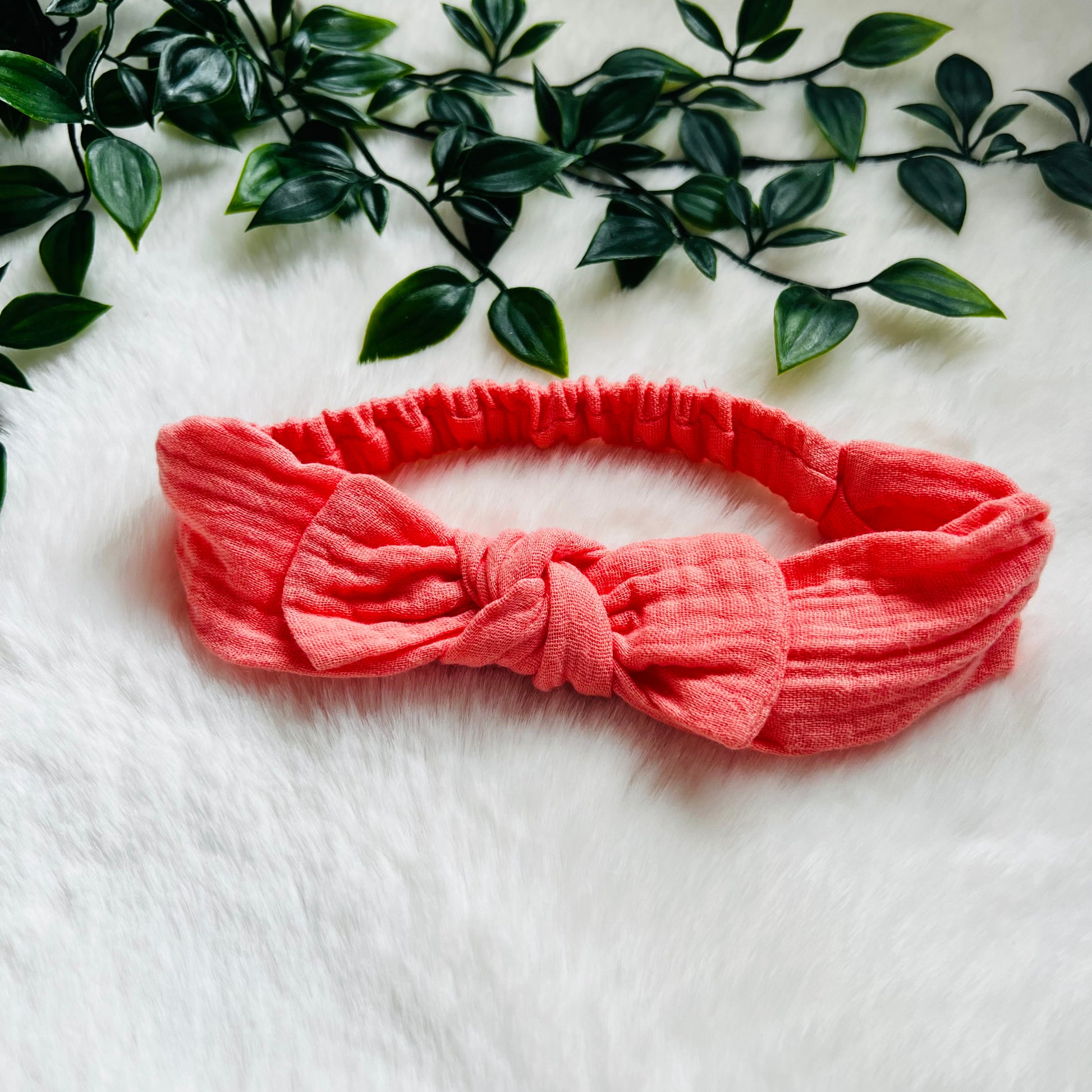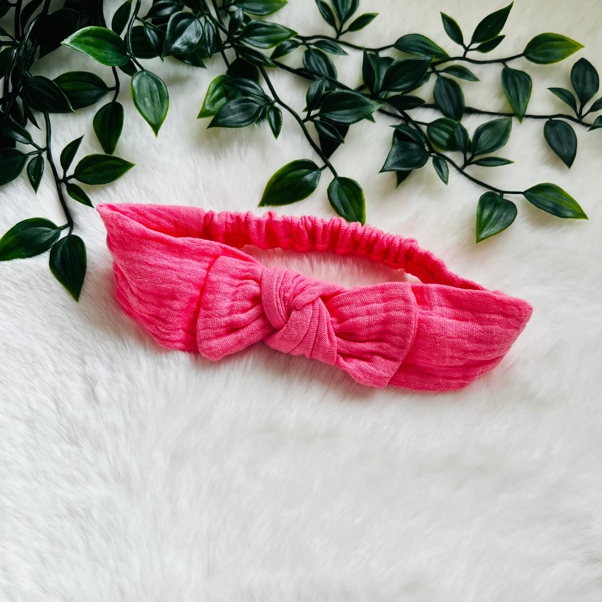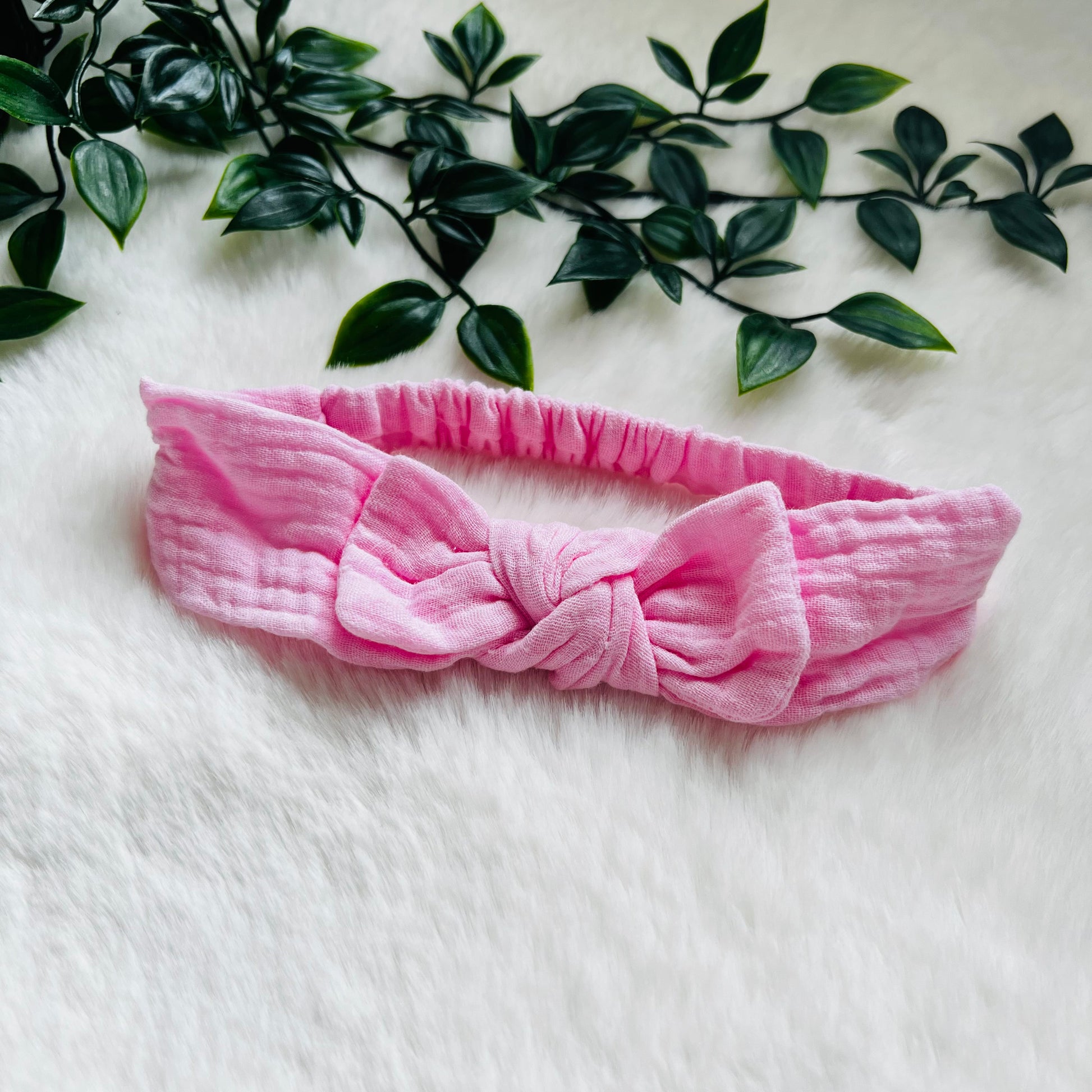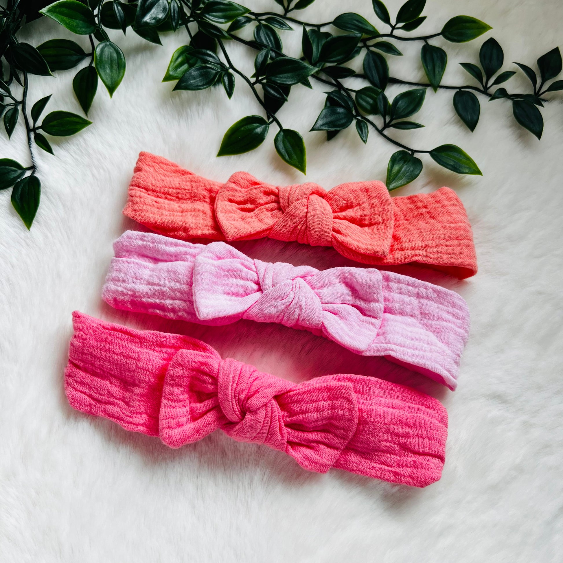 Three beautiful and stylish baby headbands with a pretty little bow and an elastic back. Made from 100% double gauze fabric. A perfect accessory for your little bundle of joy!