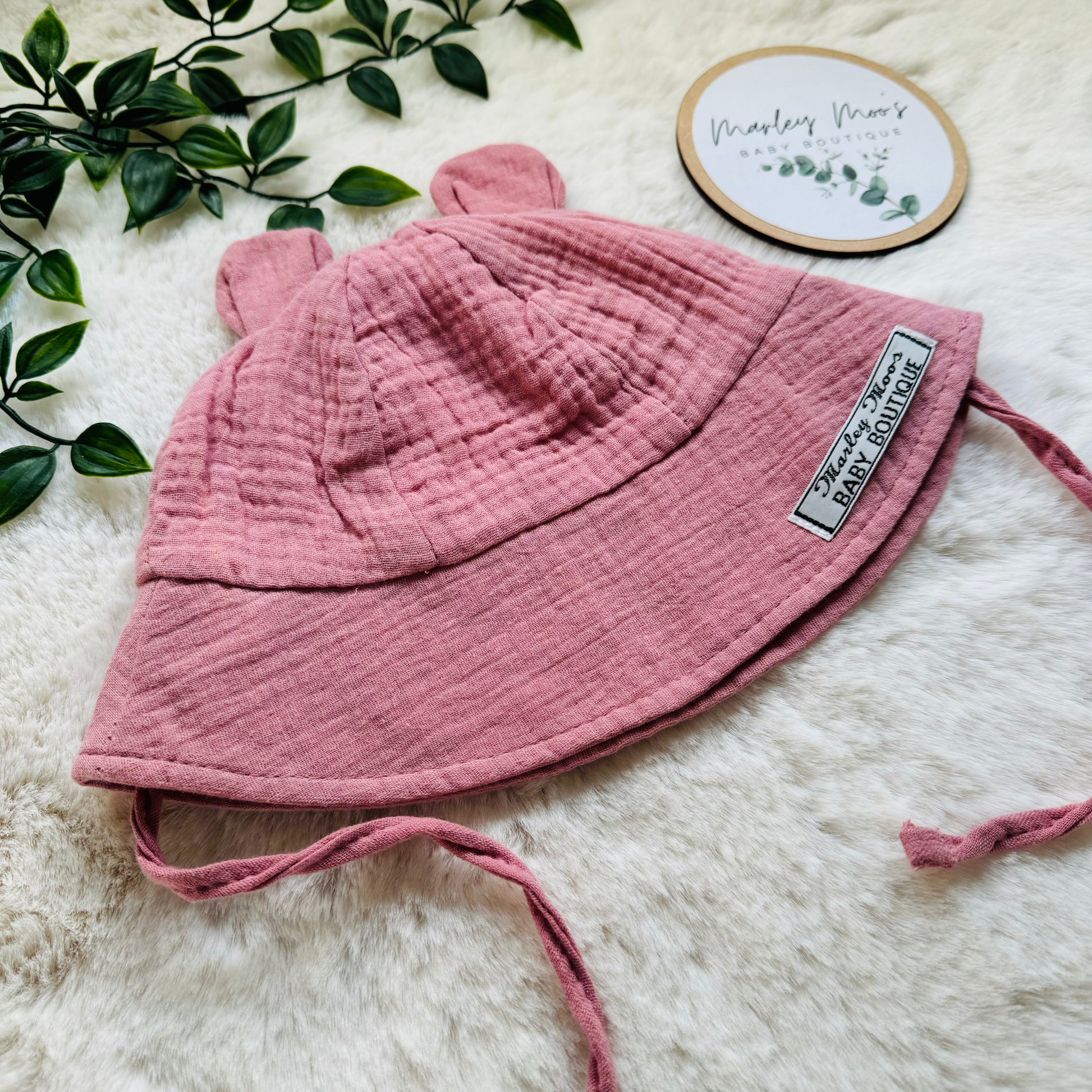 A beautiful and stylish baby sun hat with cute little bear ears. A perfect accessory for your little bundle of joy to protect them from the sunshine.