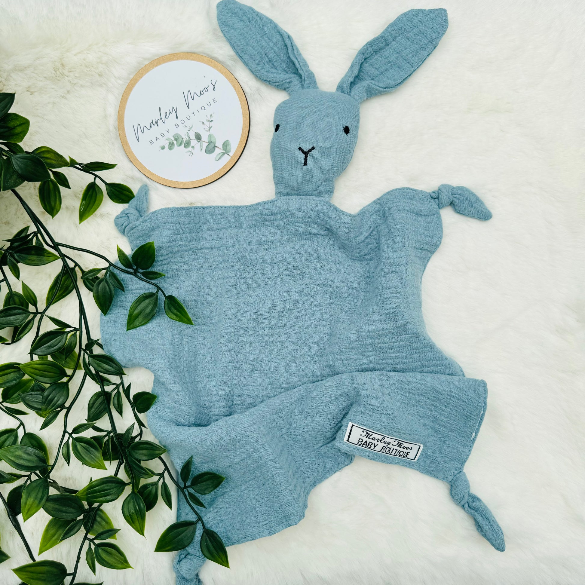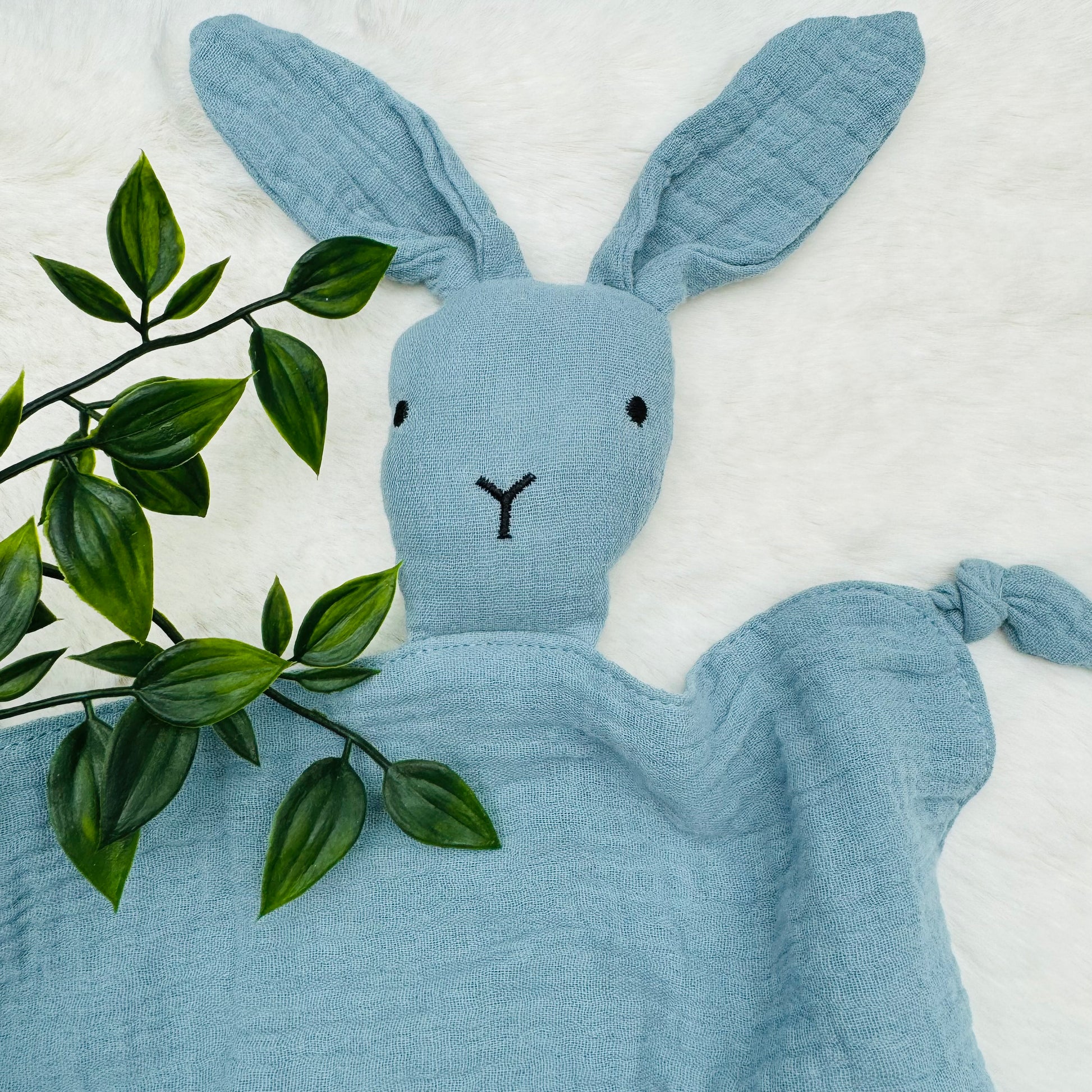 A really cute rabbit design made from super soft muslin fabric. 100% cotton.